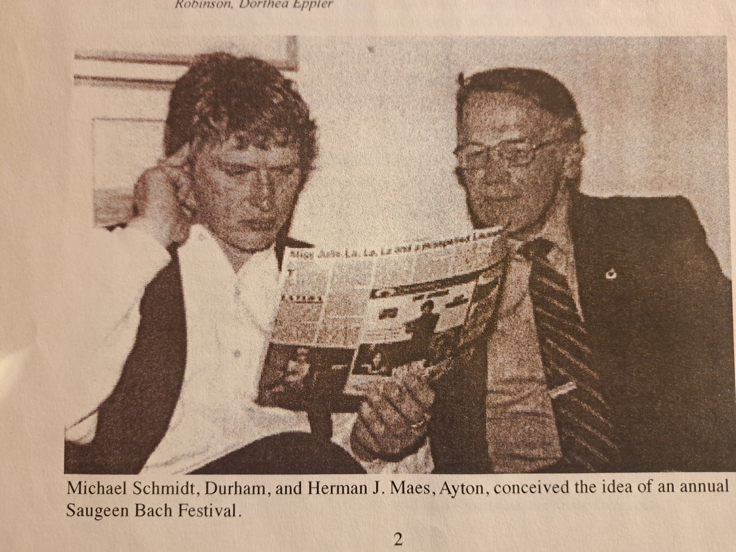 It was in 1984 when Michael Schmidt and Hermann Maes founded the Saugeen Bach Choir. The choir had its first performance in 1985, celebrating the 300 Anniversary of Bach’s birth. 60 singers, 24 orchestra members, 4 soloists and 500 people attended the concert in Hanover’s St. Mathews Lutheran Church. On the program were 3 Bach Cantatas.